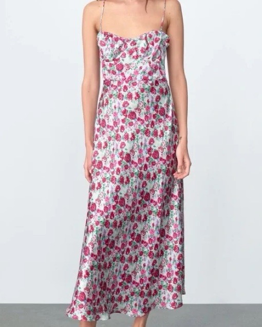 Floral Print Maxi Silk Slip Dress by Zara - Pickle