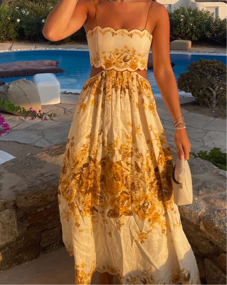 This eye-catching midi dress is perfect for a summer wedding or garden party. The bold floral print and flattering silhouette make it a stylish choice for any special occasion.