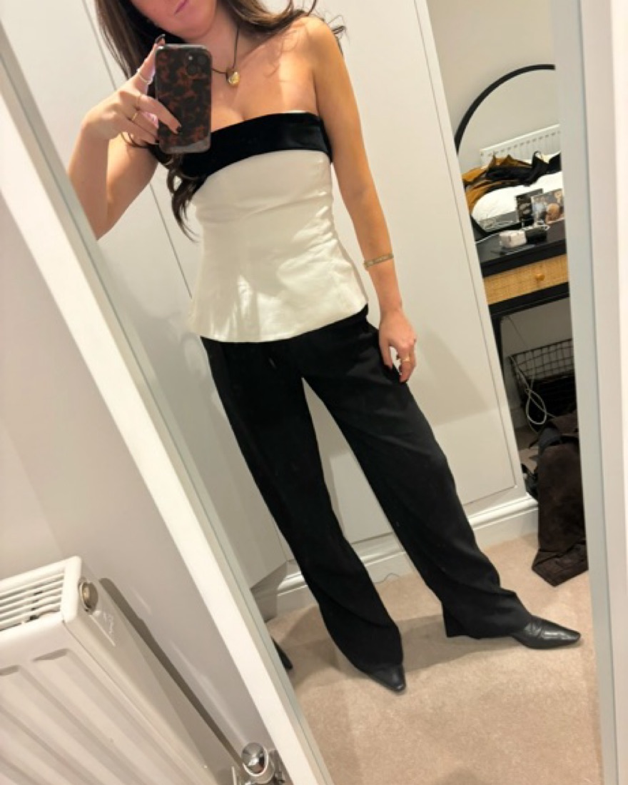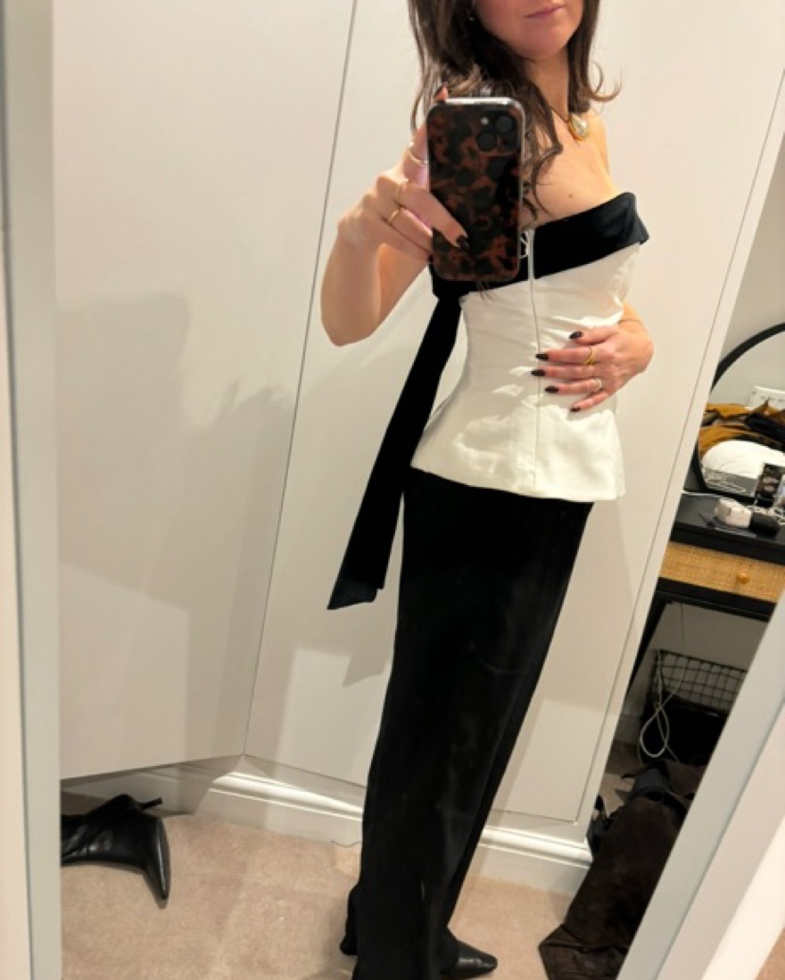 Zara strapless velvet bow top. only the black bow is velvet.