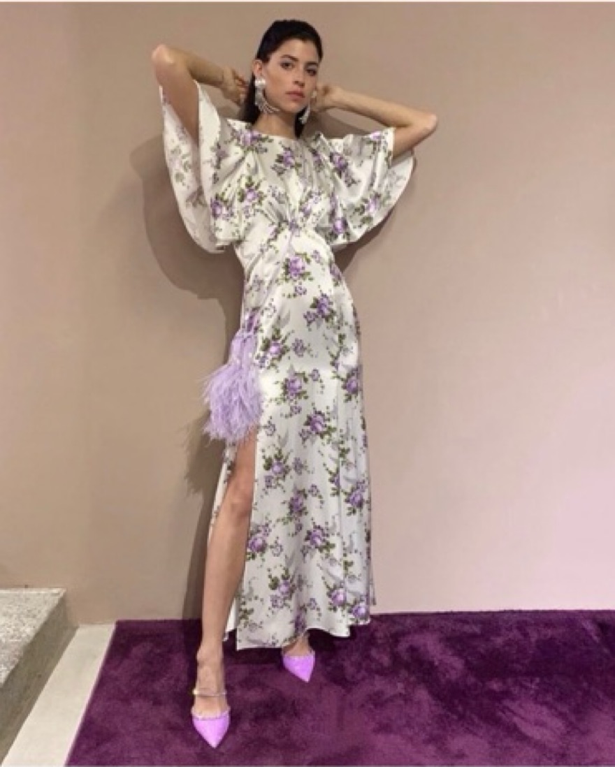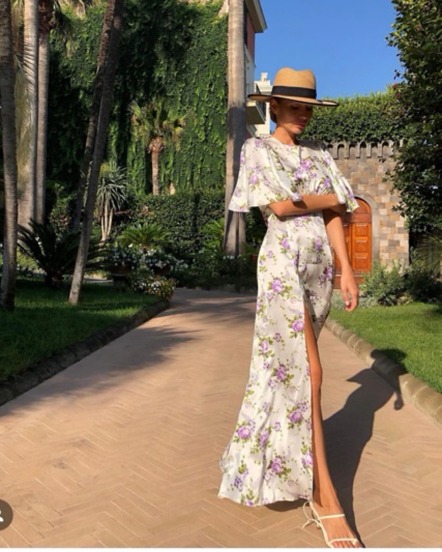 Les Rêveries' floral-print dresses have been spotted on many celebrities. This maxi design is cut from silk-charmeuse and has a gathered bodice with fluttery petal sleeves, reminiscent of styles from the '30s. The skirt is slit to the thigh, so you can show off a beautiful shoe.