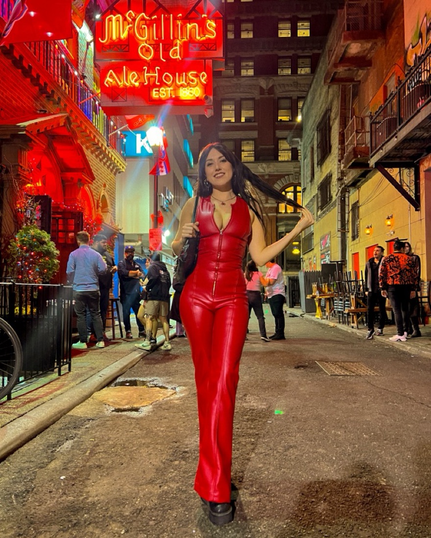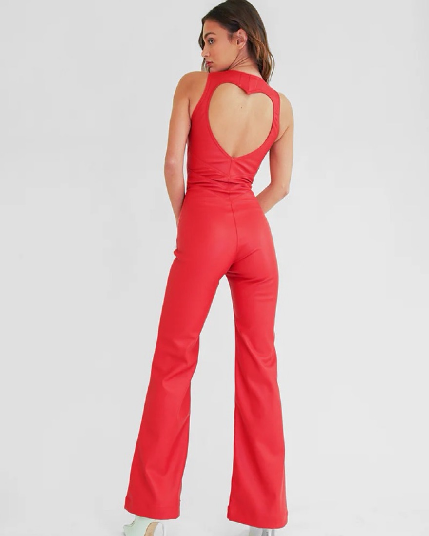 The jumpsuit you love, now in vegan matte red leather. A retro-inspired style with seams that will hug your curves and white waist detailing that gives the perfect corset effect. The Hollywood Heartthrob features a heart cutout back and finished with a plunge neckline and O-ring zipper pull.