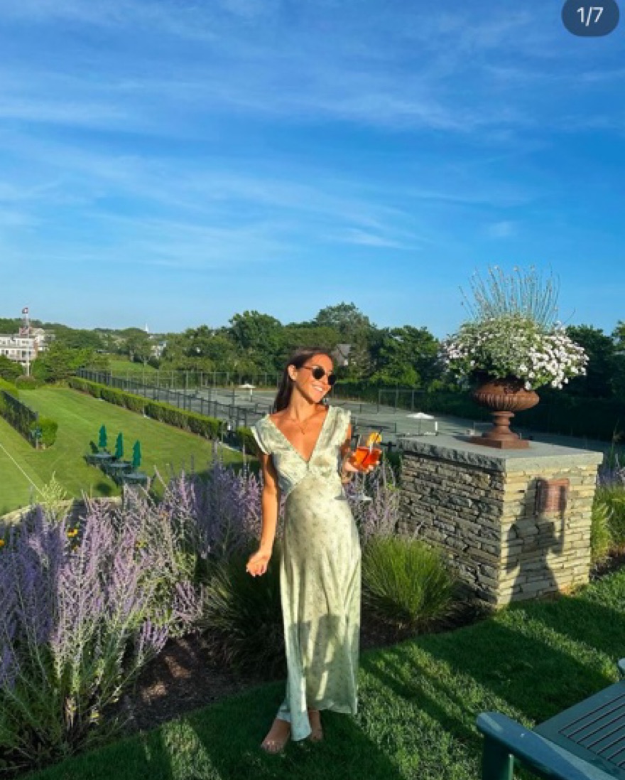 Long blue floral silk dress