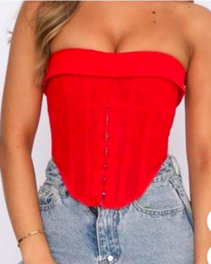 The perfect red bustier top! Extremely flattering on. In great condition :)