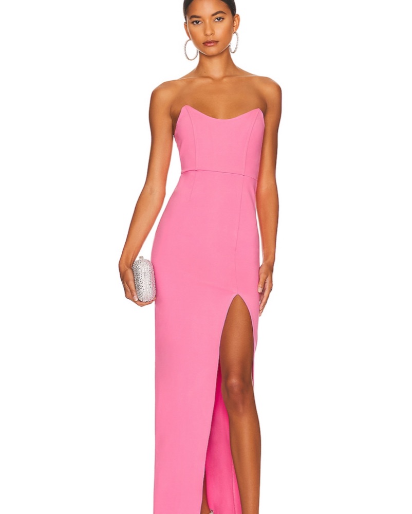 Ryleigh Strapless Maxi Dress In Pink by Superdown - Pickle