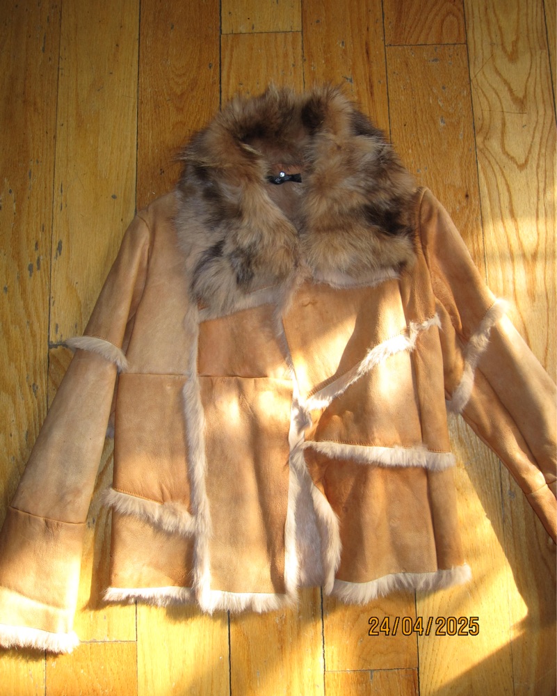 Truly one of the most stunning vintage jackets I own, get compliments every time I wear it. Its super soft on the inside and the collar is detachable so you can wear it two ways! Looks stunning paired with denim