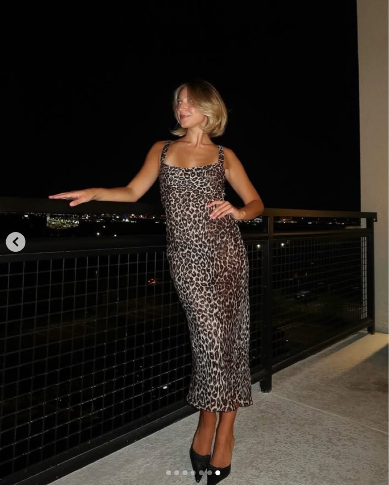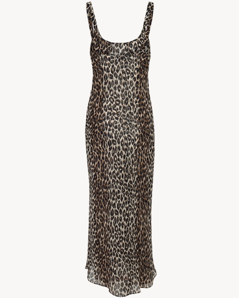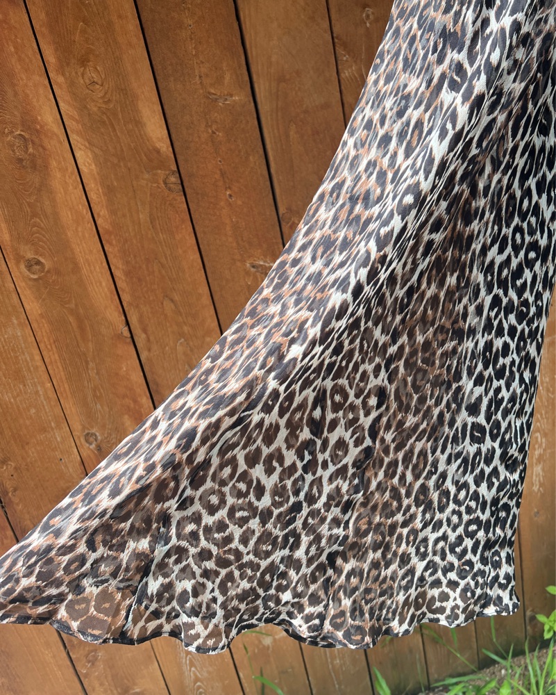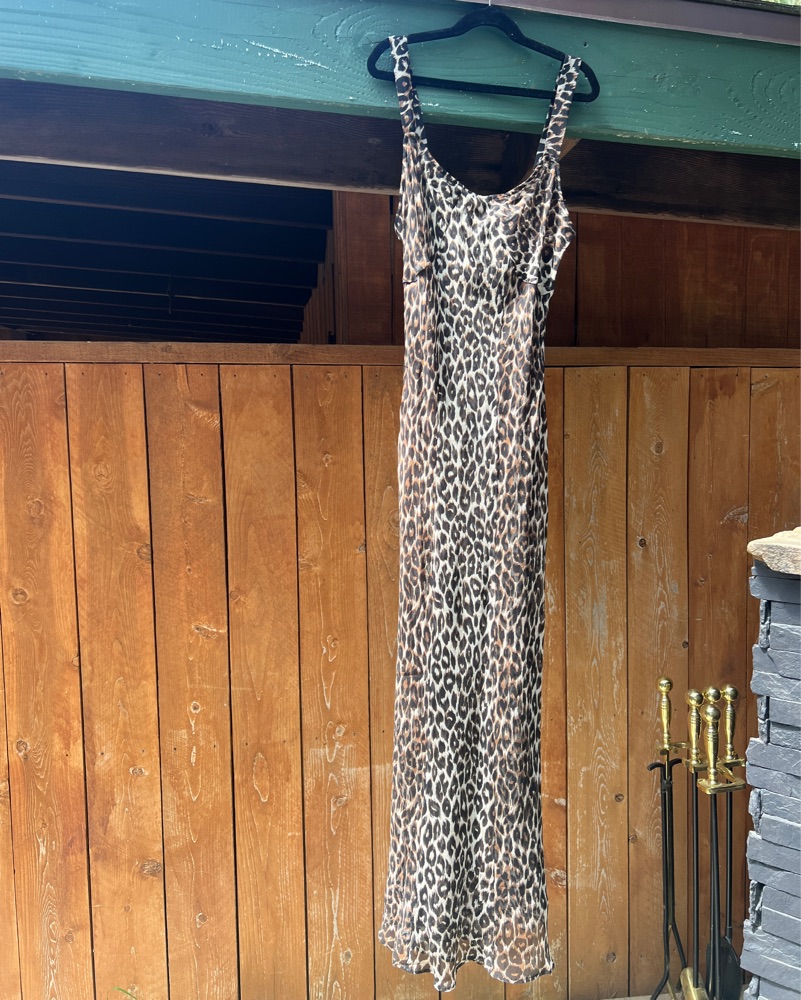 Just purchased from the new collection! Double paneled layered leopard print midi dress in silk georgette. Bias cut, slip on, no zip. Not see-through, fits TTS. Size Small