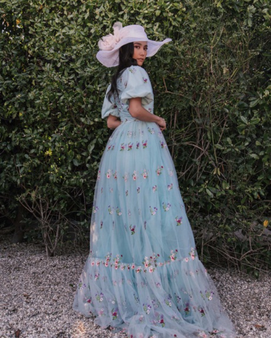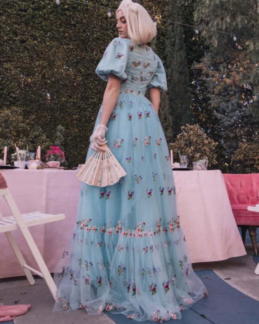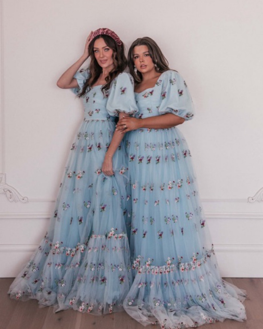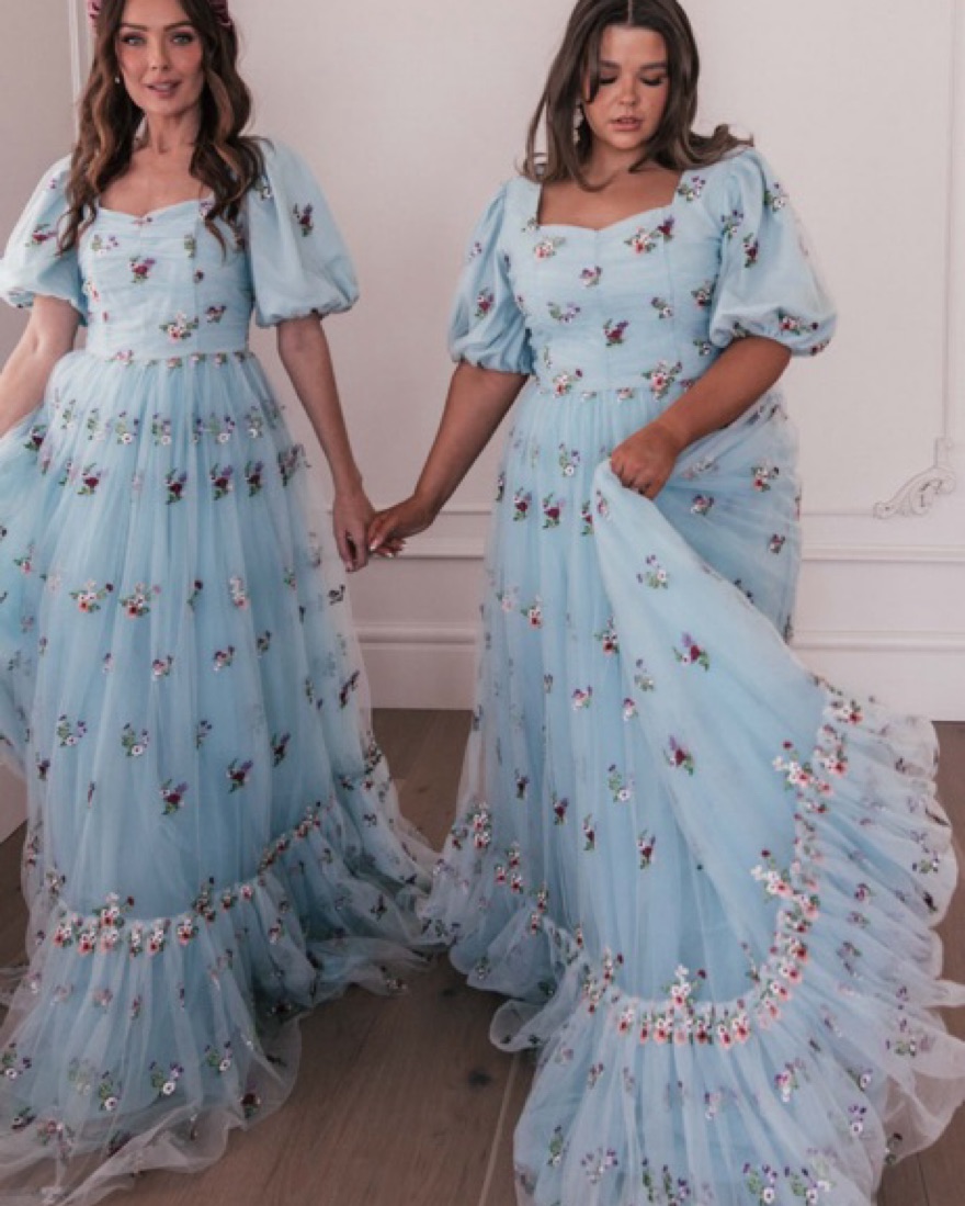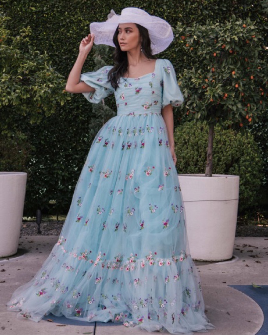 BEAUTIFUL blue floral gown. Never worn…. Yet! Cant wait for an opportunity to wear this but until then, would love for someone to rent it. :)