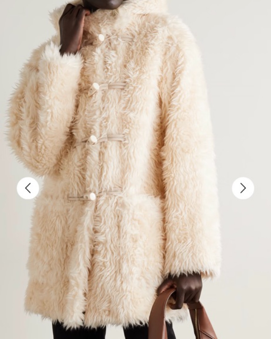 Fluffy faux shearling with classic toggle fastenings and a cozy hood. Perfecr winter coat!
