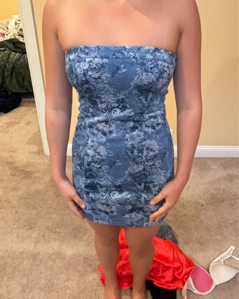 Blue Floral Strapless Mini Dress