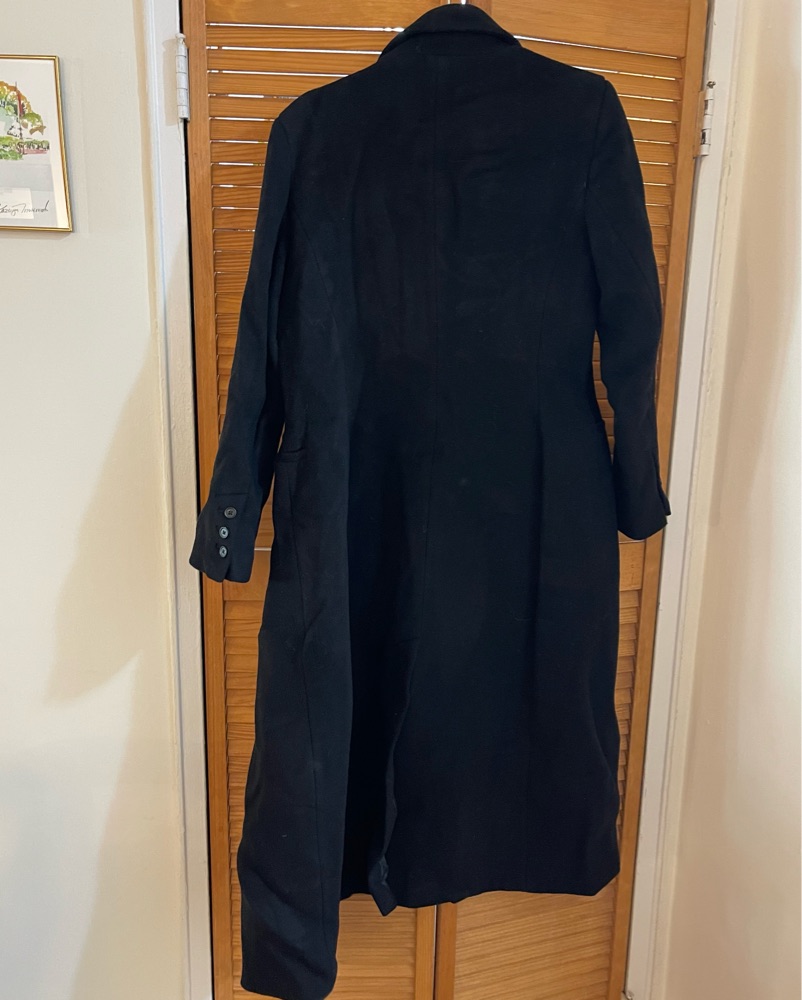 Wool-blend double breasted coat. Size XL- I wear it entirely oversized intentionally. Features notched labels, long sleeves, side welt pockets