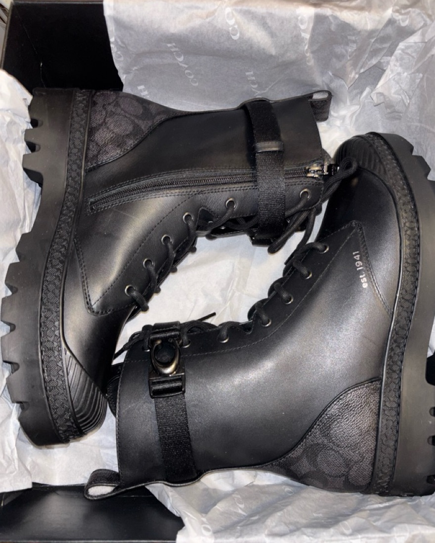 These fierce Coach combat boots will add an edgy vibe to any outfit. Ideal for a night out or a casual day look.