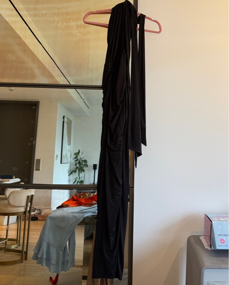 x Revolve Morgan Gown. This stunning black maxi dress is perfect for a formal event or special night out. The dramatic high slit and halter-style neckline create a flattering, alluring silhouette.