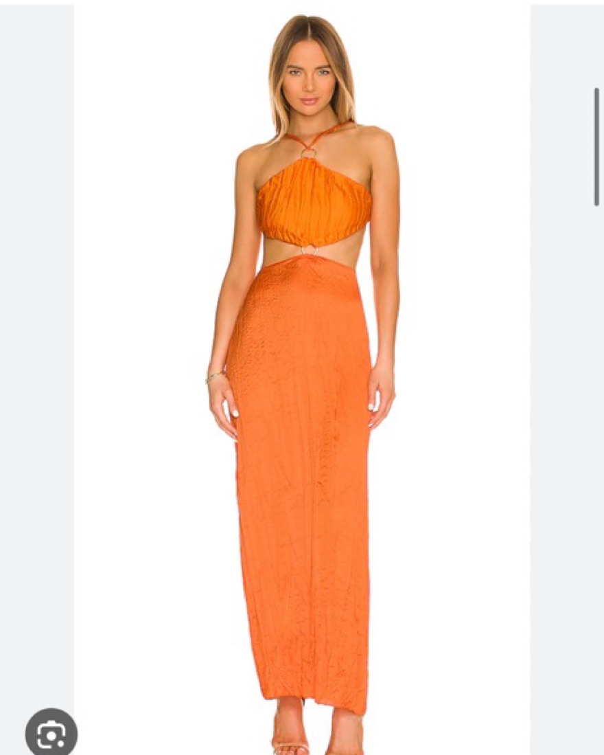 From Revolve - Orange maxi dress with cutout and gold circle