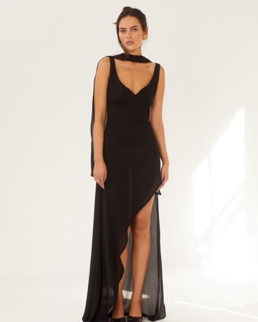 Arcina ori amelie dress in black. Scarf dress. Perfect wedding guest dress.
