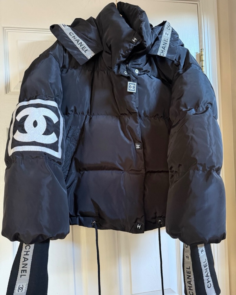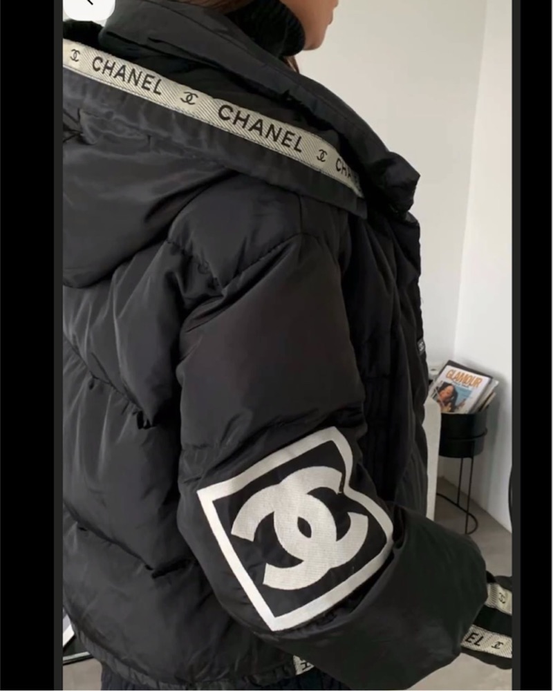 VIRAL Warm Vintage Designer Chanel Logo Puffer Coat in Black. Size S/M will fit most! 😍 Perfect for Winter Season and Ski Trips! It-Girl NYC Trendy