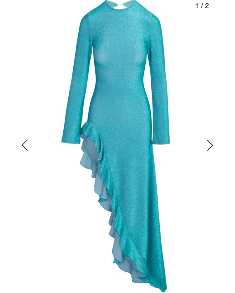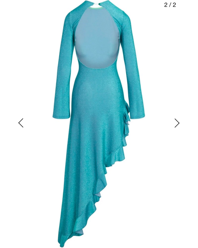Blue version of the Delfi Collective Rosalia dress. Model images show the green dress, but the dress is actually blue. Jersey Metallic