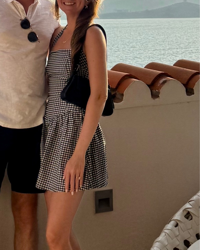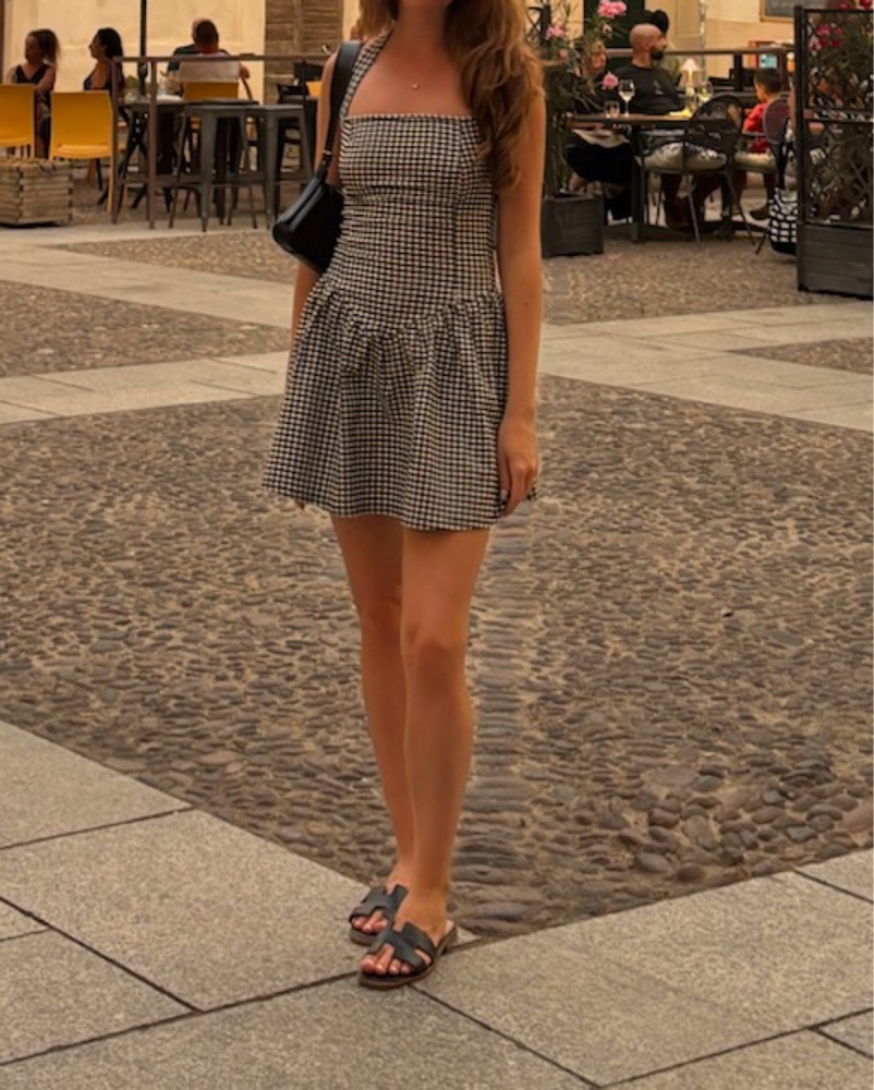 Checkered Black/White Basque Waist Dress by No Brand - Pickle