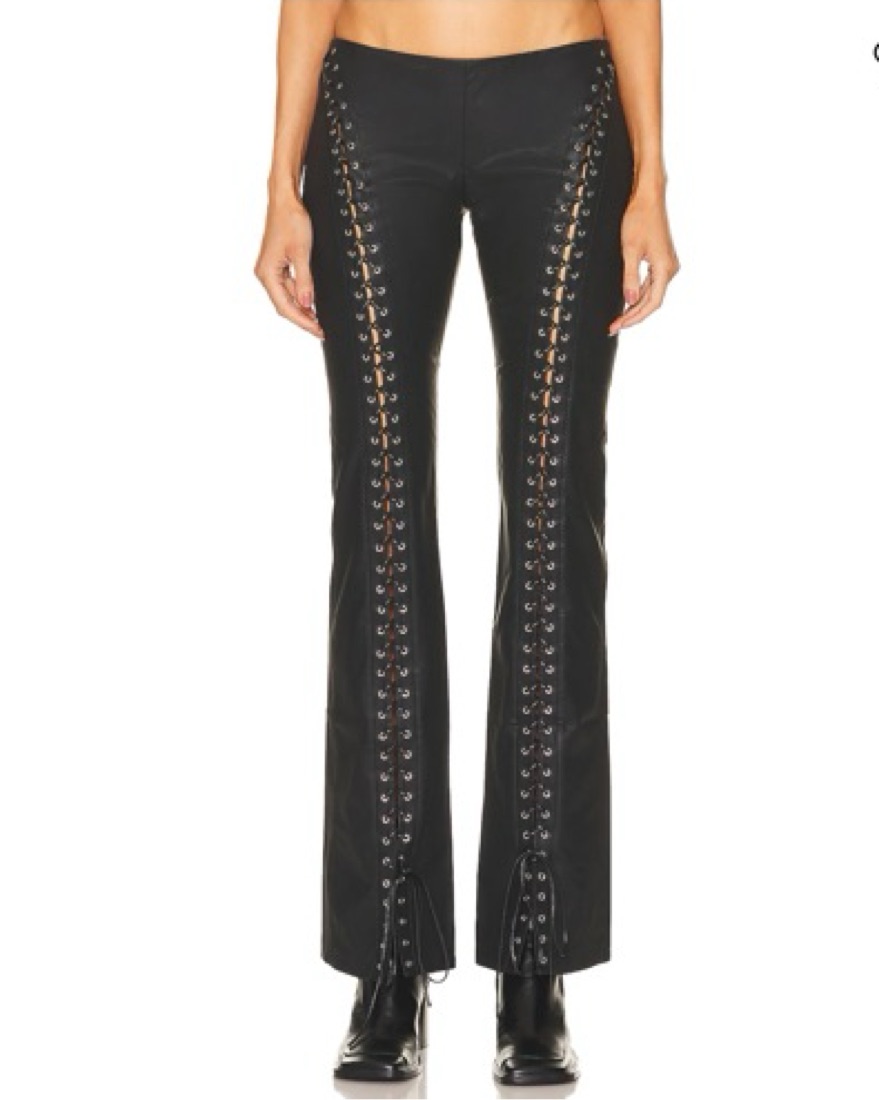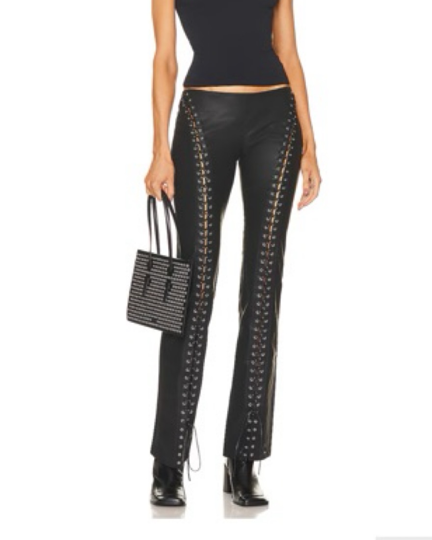 These sleek and stylish black flare pants with metal stud detailing are perfect for a night out in the city. Pair them with a crop top and heels for a chic, edgy look.