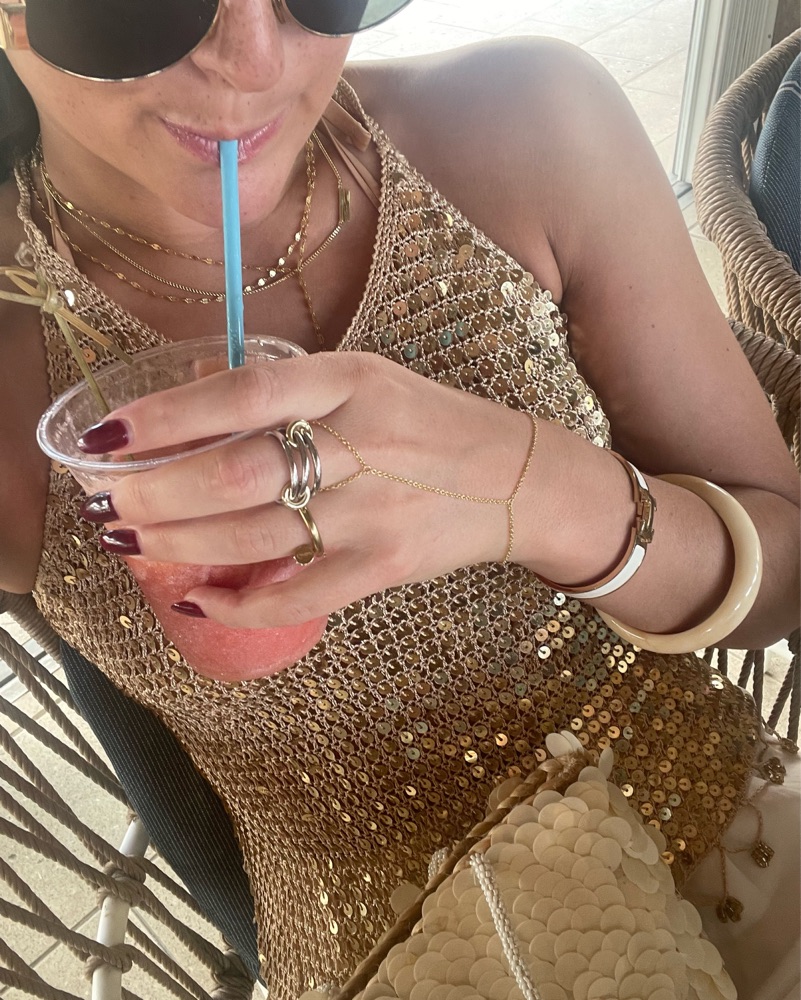 Stunning gold crochet sequin top with beaded detail at the bottom. Fits like a XS/S and is perfect for the beach or a night out