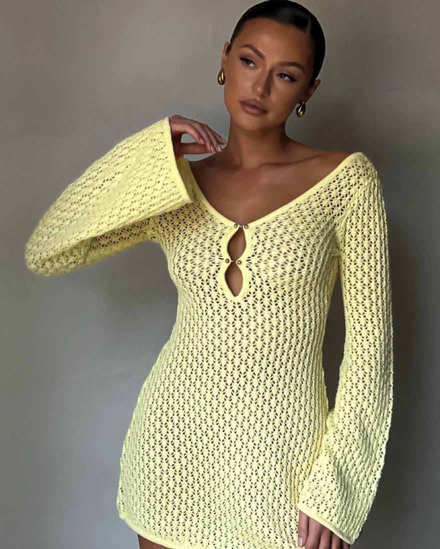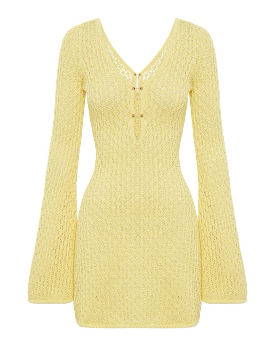 Lemon colored crotchet mini dress perfect for sunny weather or a tropical vacation ✨