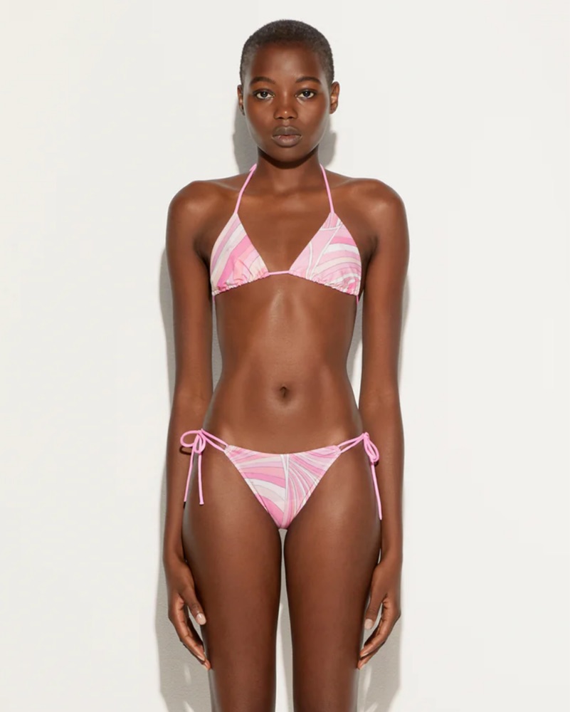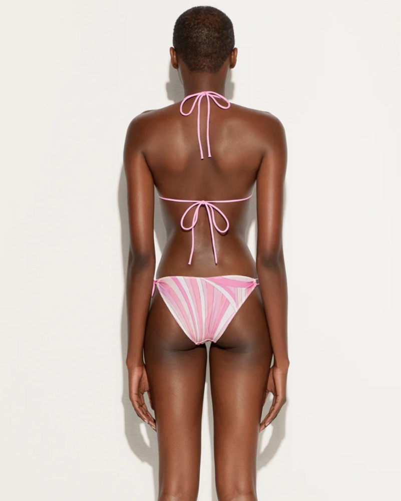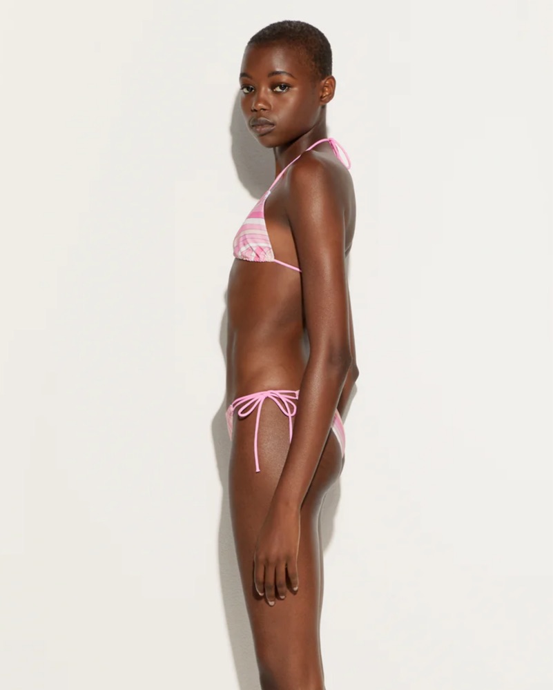 This stylish and flattering bikini is perfect for a day at the beach or pool. The vibrant pink and white striped pattern creates a fun and summery look.