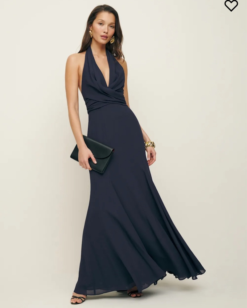 Reformation Navy Blue Halter Maxi Dress