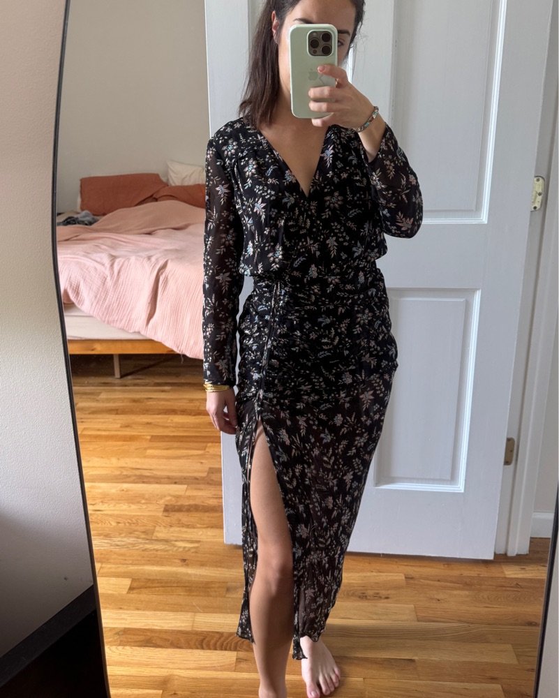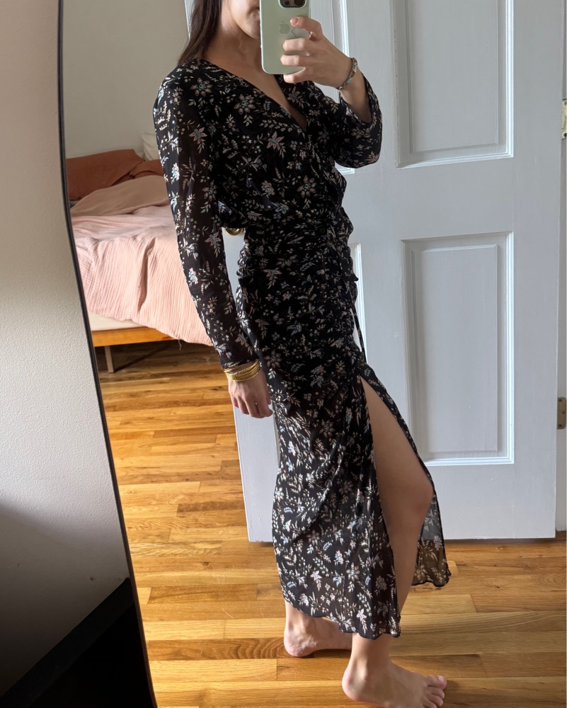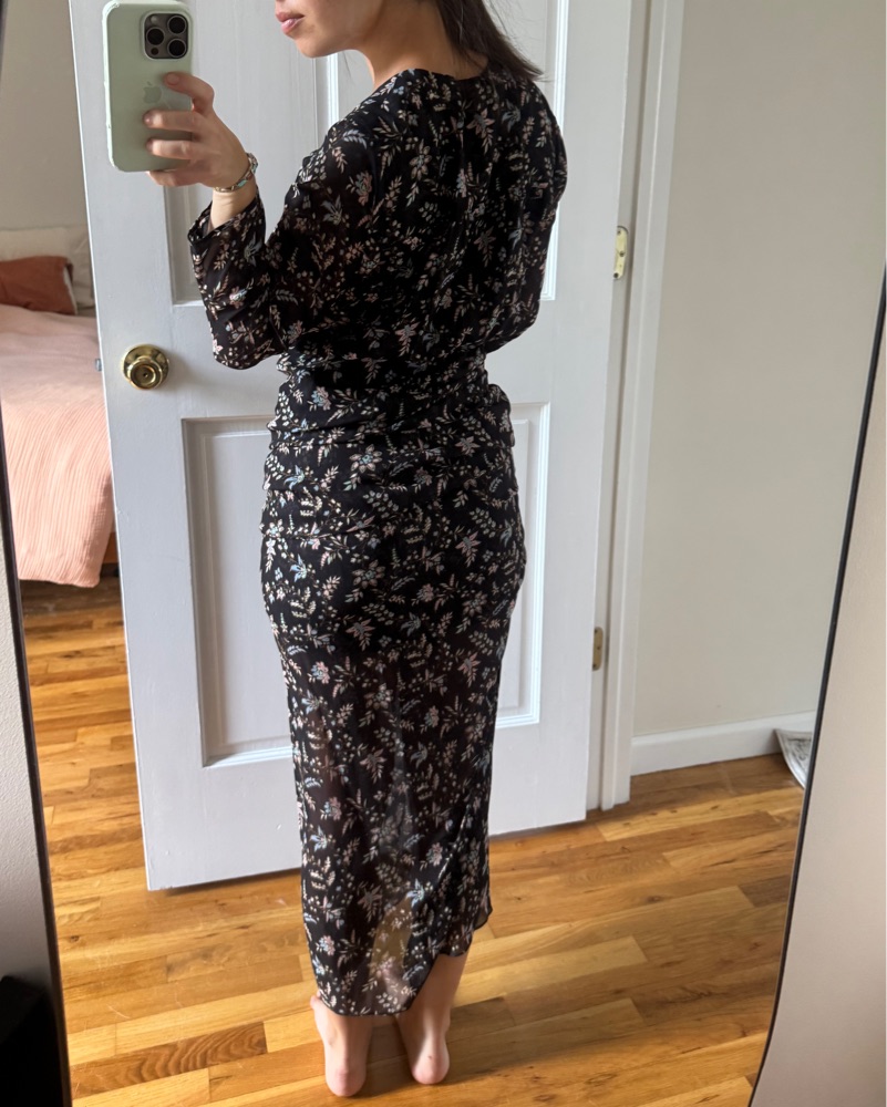 Veronica Beard Slit Dress. Black With Flowers. Light almost sheer material but covers key areas. Says size 2 but fits 0-2