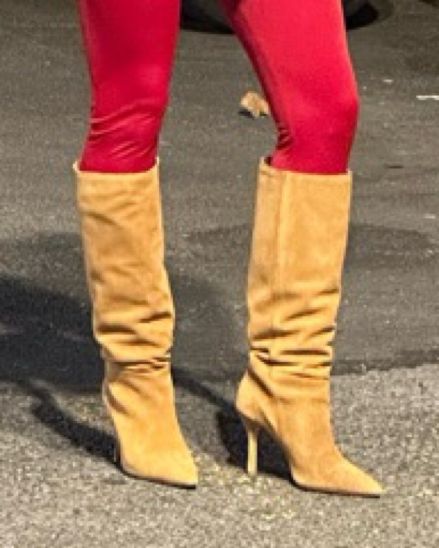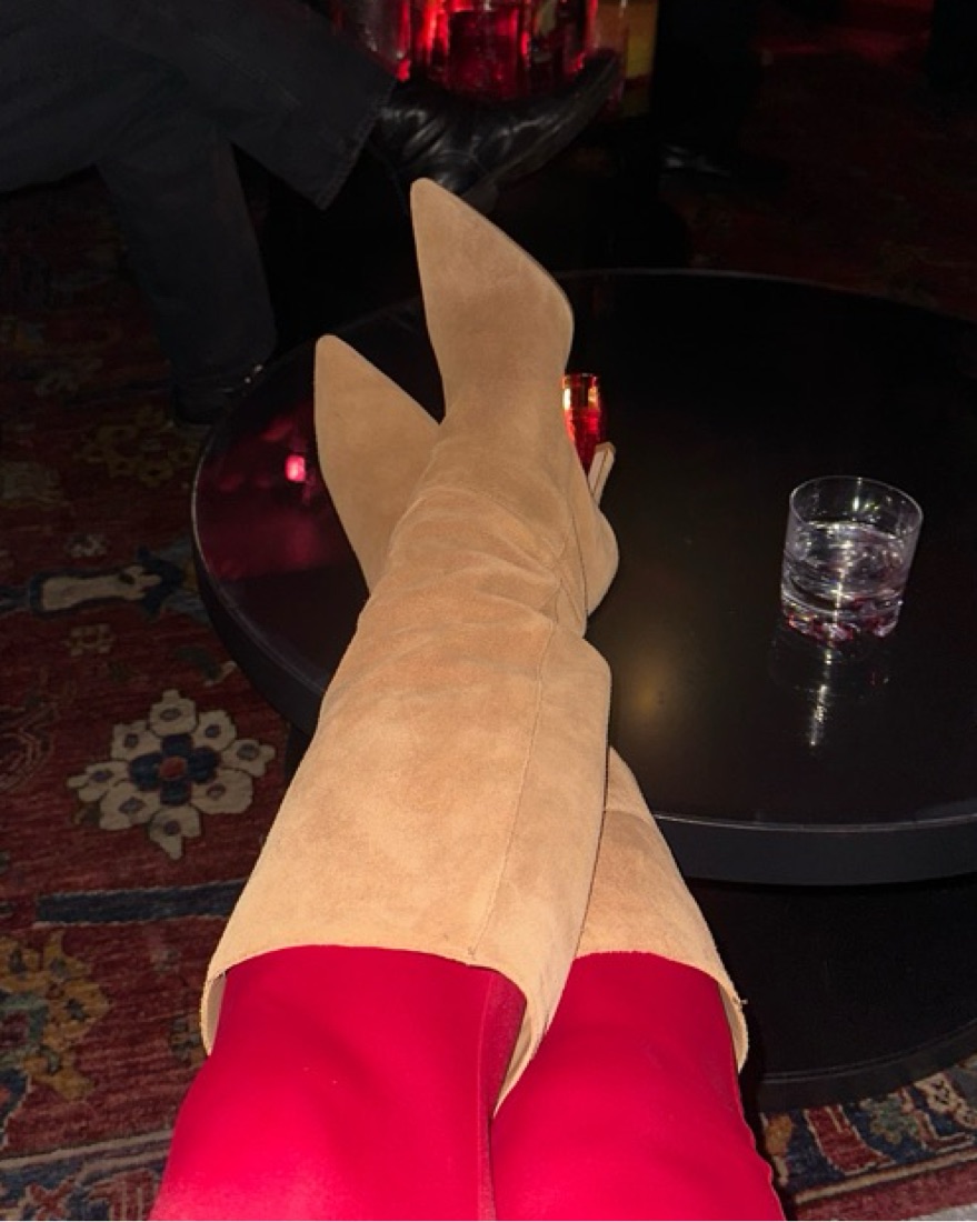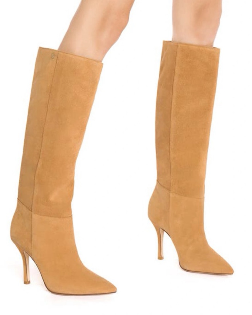 Knee high pointed toe boots in a dark tan