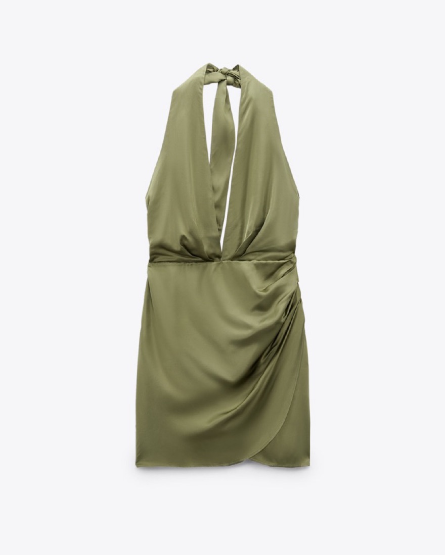 Zara Green Satin Halter Mini Dress in size S. Halter is adjustable and can be tied for a perfect fit/length. Simple yet stunning piece—pairs well with a variety of fun accessories :) 💚