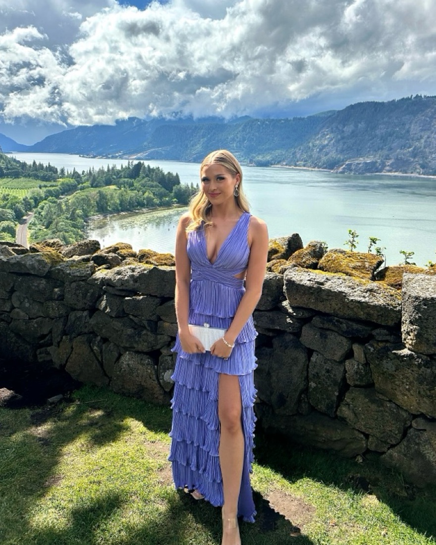 Lavender Satin Pleated Tiered Lace-Up Maxi Dress (SOLD OUT), size small, perfect condition!