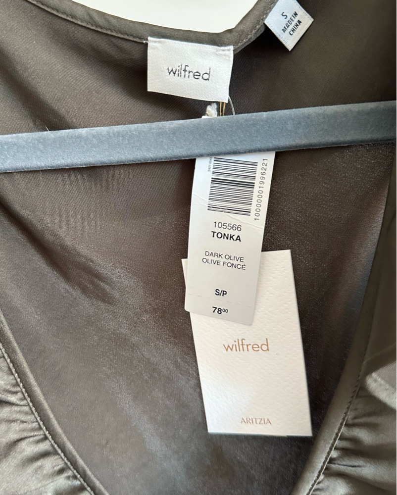 Aritzia dark olive satin blouse - new with tags/never worn!