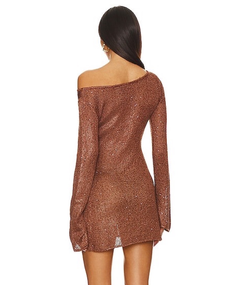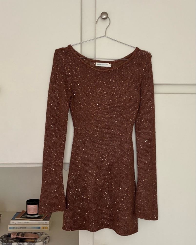 Chocolate brown sequin long sleeve mini dress. Knit fabric with sequin embellishments. Excellent condition, like new! This dress is delicate, pls don’t wash or snag 🤍