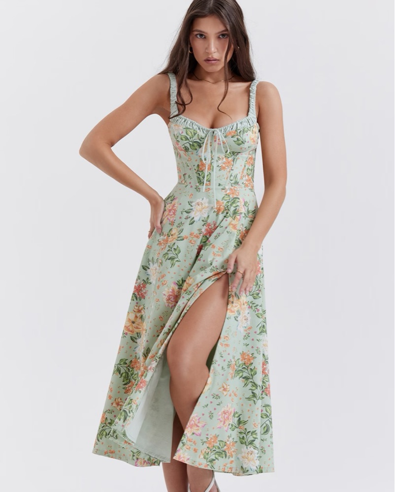 This stunning floral maxi dress is perfect for a summer wedding or garden party! Super flattering and comfy. Also has pockets!🌸 #summer #floral #houseofcb