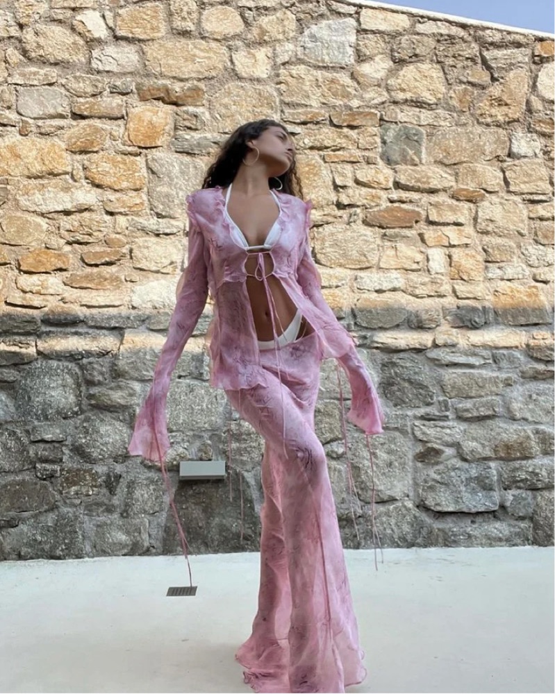 dreamy, feminine perfect for summer - top and skirt set! both xs. skirt can also be tied as a dress, see photo