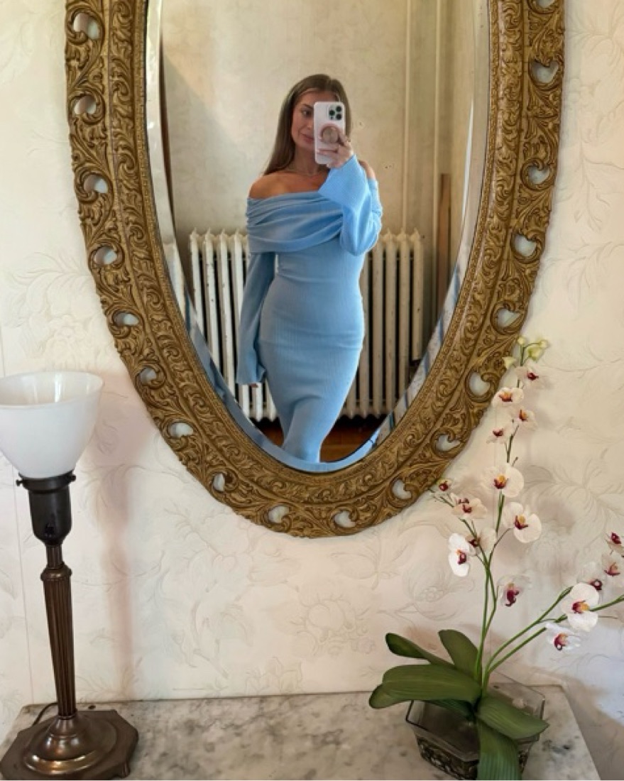 Beautiful blue dresss- perfect for spring or summer wedding/special occasion or night out. It’s sheer (i wore a strapless slip under!)