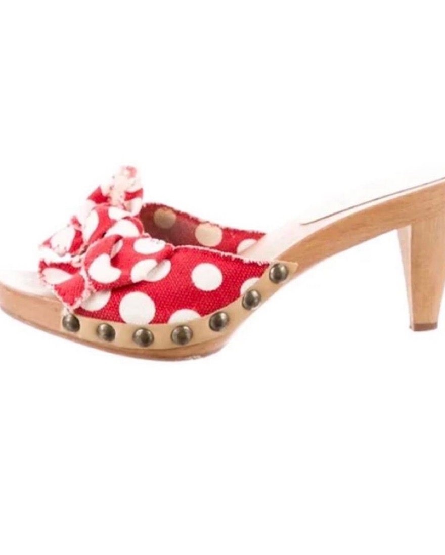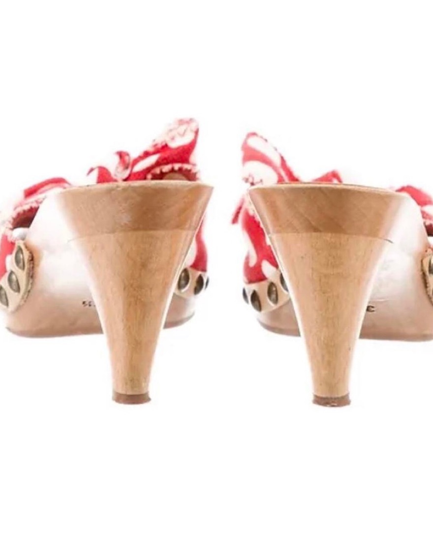 Miu Miu Red Canapa Sandal! Wooden base with canvas bow.