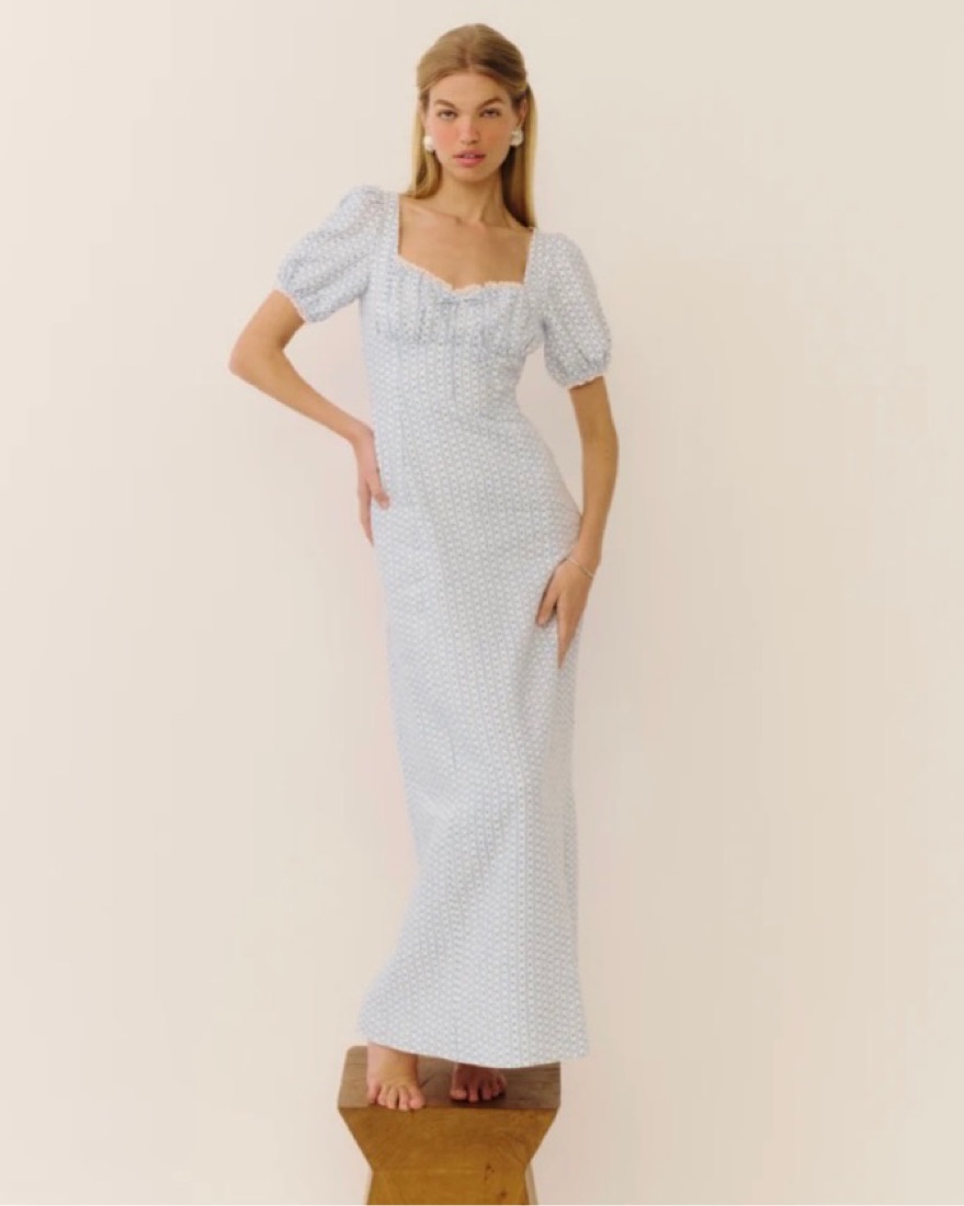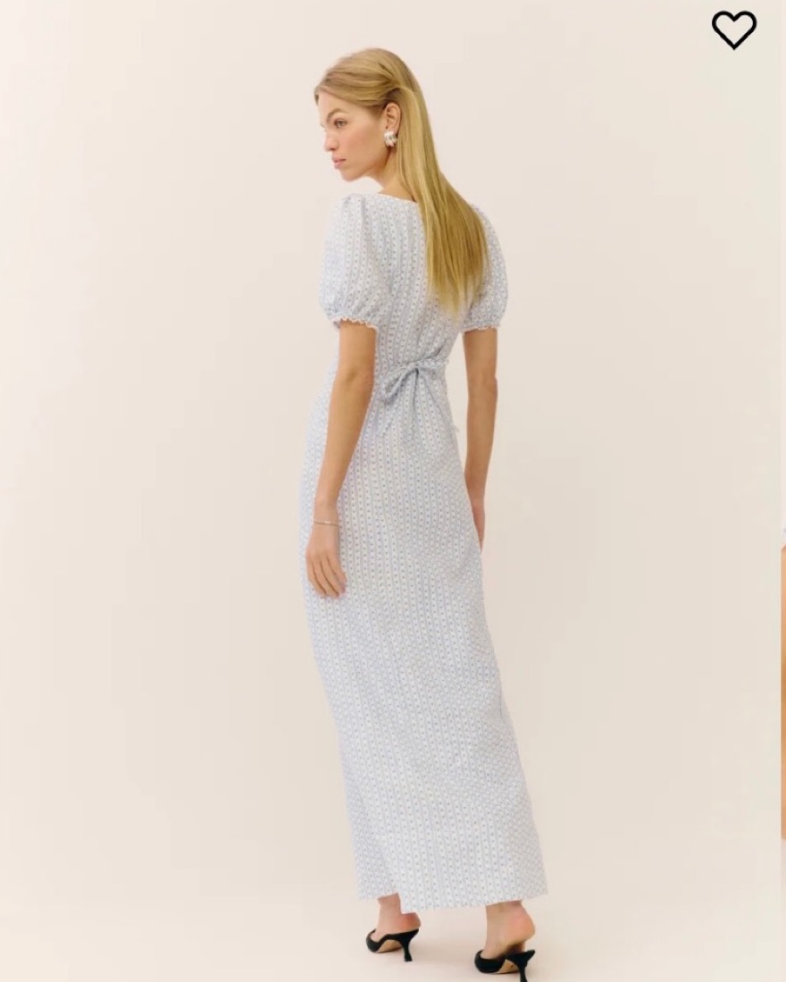 Great condition - only worn once. Sweetheart neckline and 100% linen. I am 5’6” and the dress hits my ankles