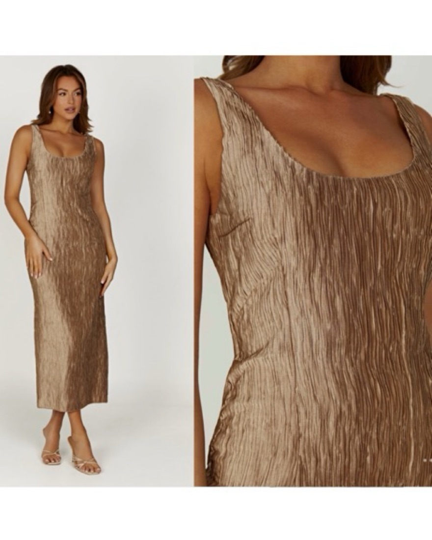 Meshki Bronze Plisse Dress by Meshki - Pickle