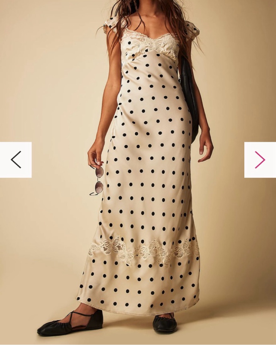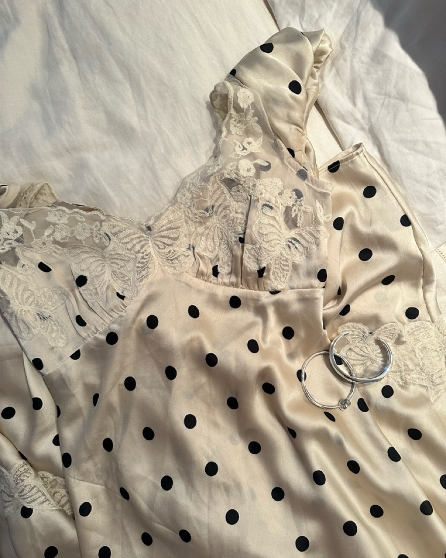 Cream Polka Dot Dress with Lace Detailing! Love styling with silver sling backs and jewelry