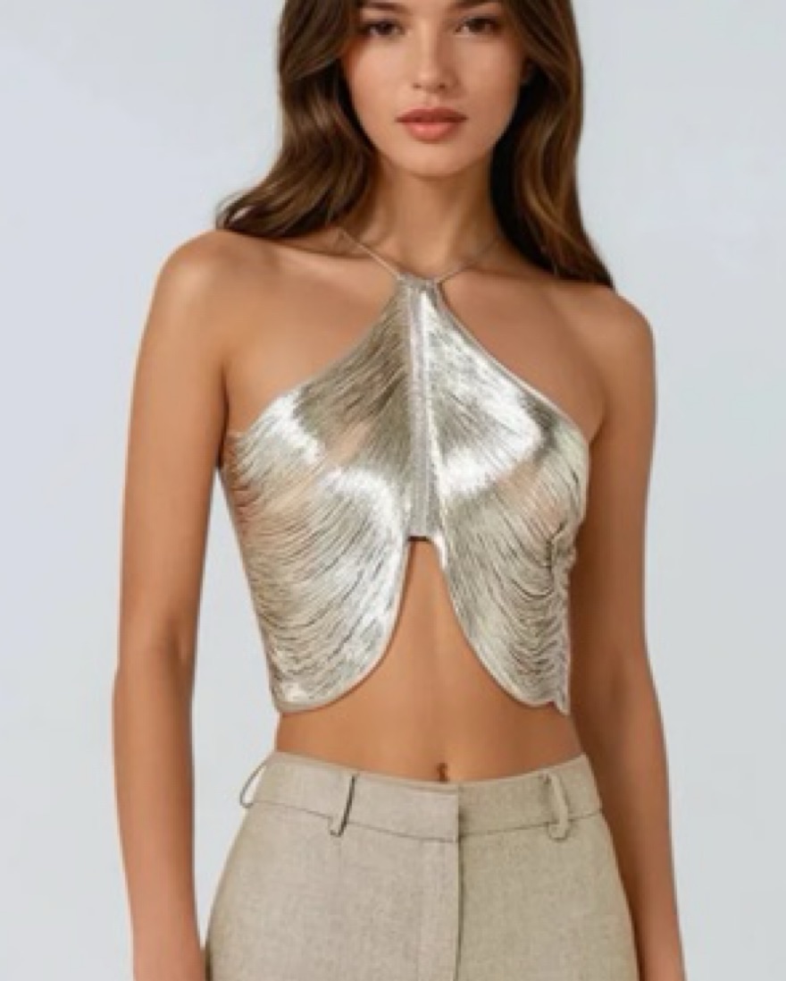Missime silver halter draped crop top