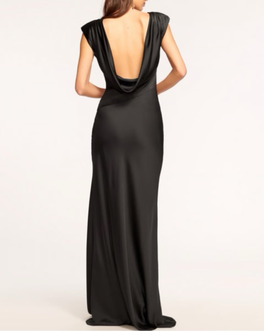 You'll feel like fashion royalty when you arrive at the gala in the Joanna satin cowl back maxi dress. This flawless, formal gown is crafted with silky stretch satin that enhances the cap sleeve silhouette, but it's the dramatic cowl back and leg slit that promises to steal the show.
