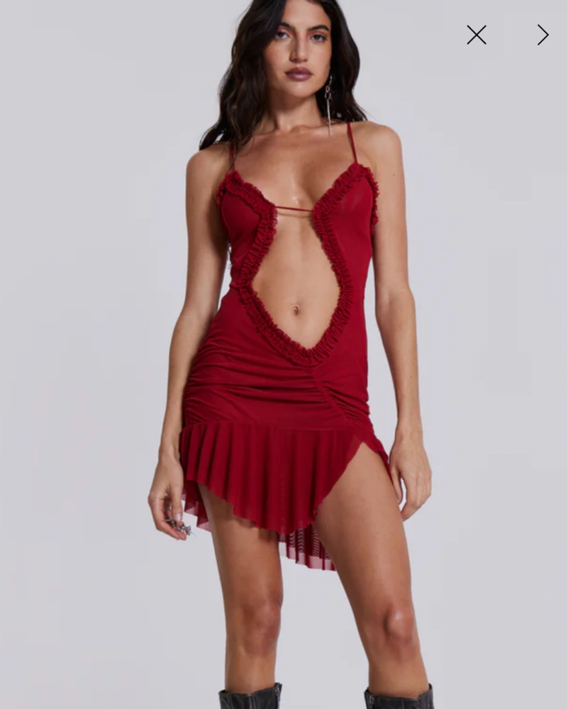 Scarlett Red Mini Fatale Dress from Jaded London. Perfect for a birthday or girls trip! Has adjustable straps