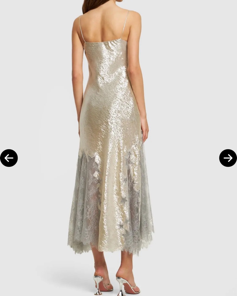 The new collection revisits signature pieces through the lens of rich minimalism and lightness for a modern perspective. Romantic and ethereal, the star lace slip dress is crafted from a silk blend with subtle sheen. Delicate Chantilly lace inserts add volume