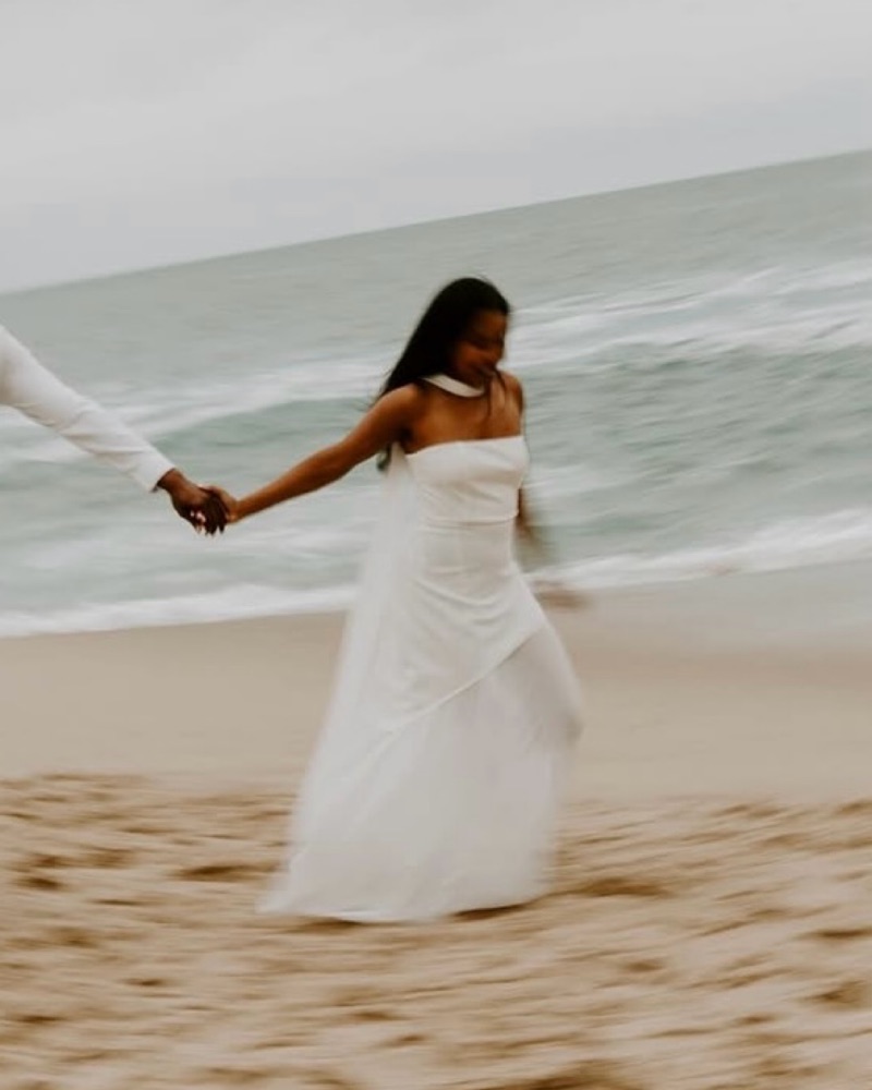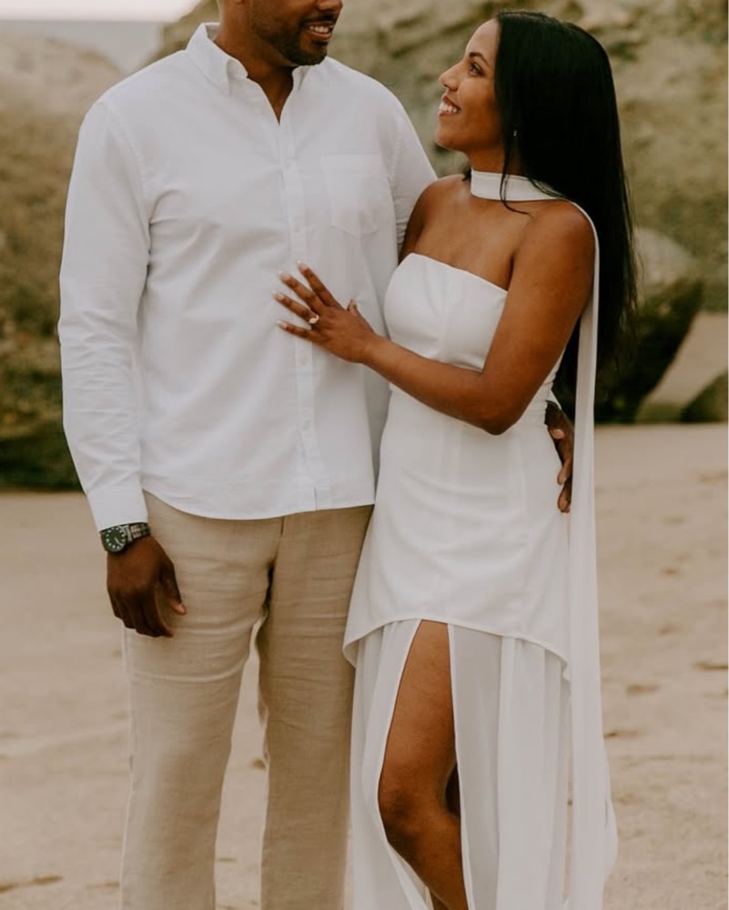 Asymmetrical white Chiffon maxi Dress with Scarf from Sunfere perfect for brides and bachelorette events. I wore this for my engagement photos on the beach and it was perfect. Fits great and the scarf is super stylish.