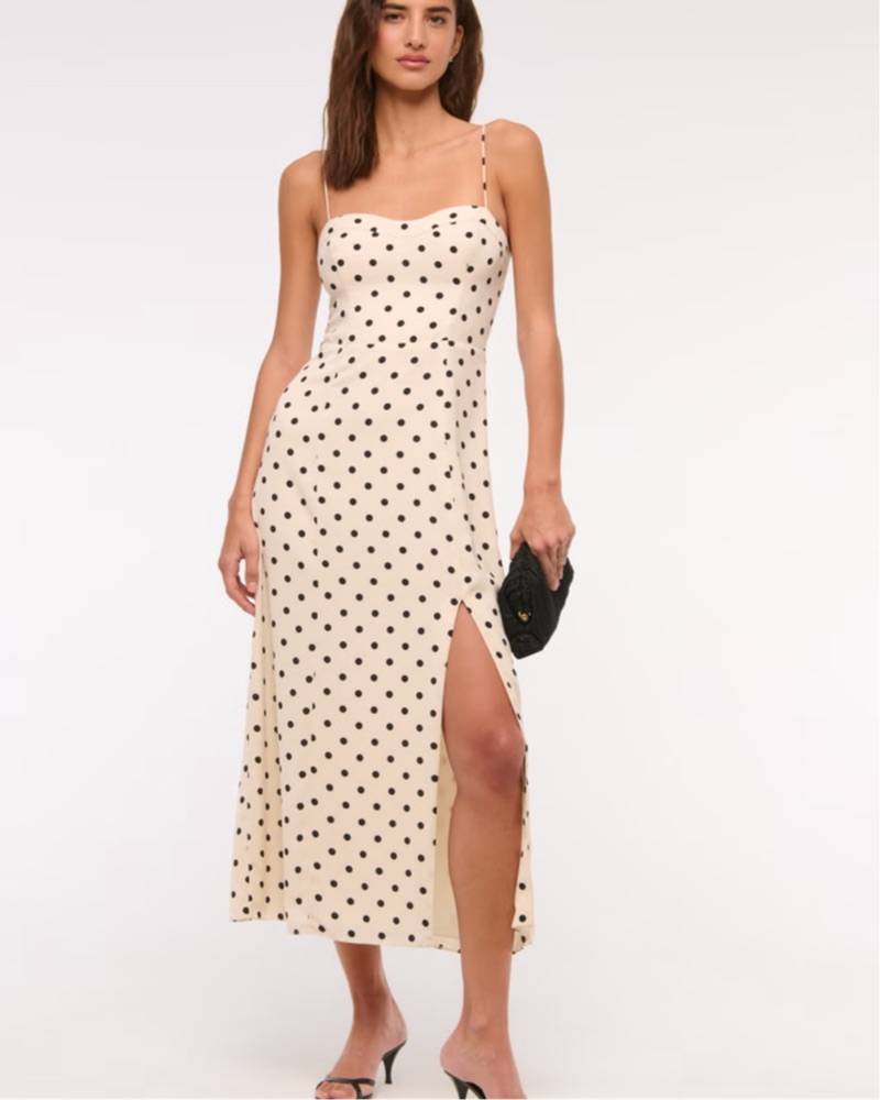 Abercrombie Cream Polka Dot Midi Dress by Abercrombie & Fitch - Pickle