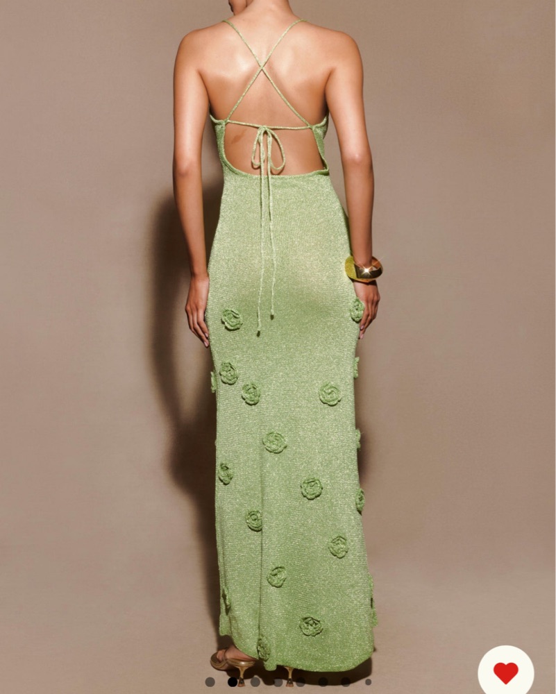 This stunning glittery green maxi dress is perfect for a fancy event, night out, or vacation! The figure-flattering design and shimmery fabric will have you feeling confident and glamorous. The dress has been worn once on my bachelorette trip.