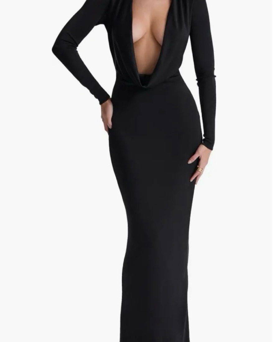 silki plunge cowl neck dress