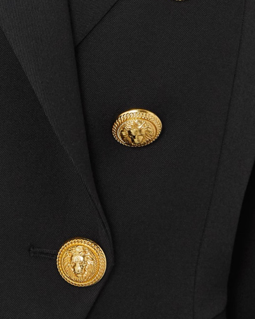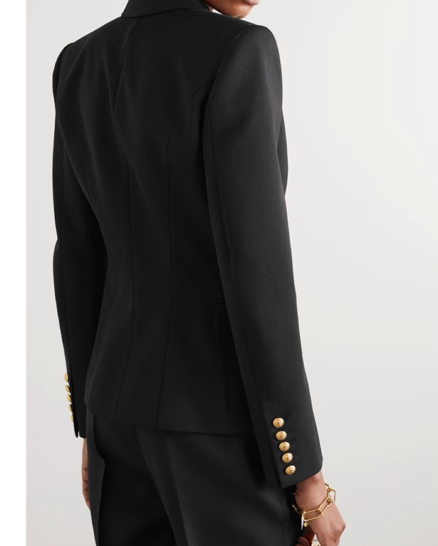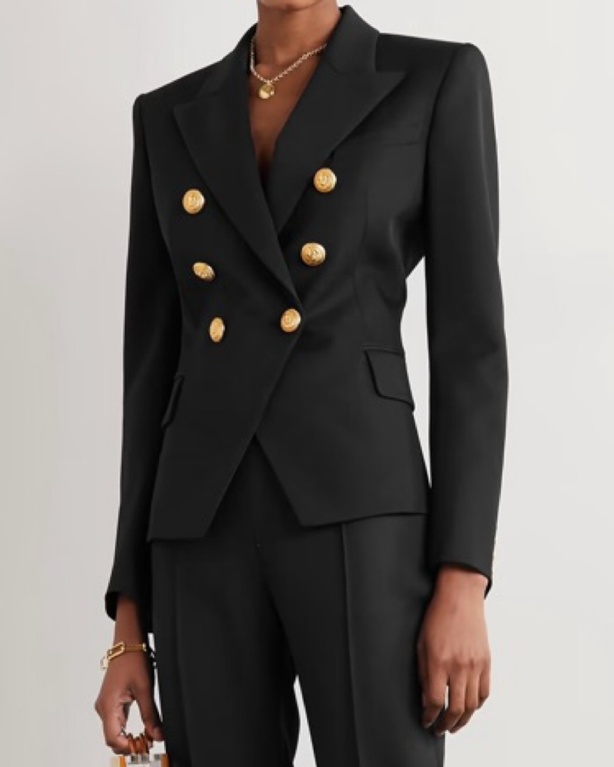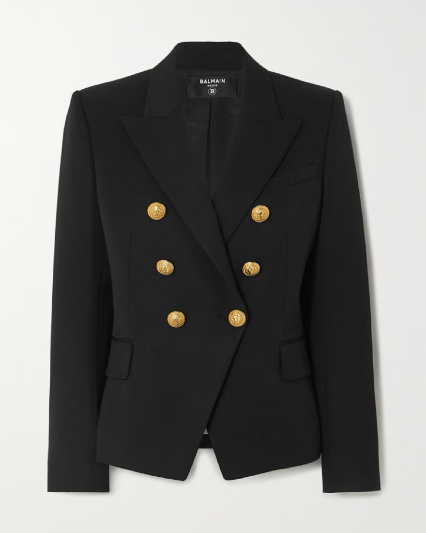 You can always count on Balmain to deliver precisely tailored pieces that exude effortless sophistication. Made from black wool-twill, this blazer has a slim, double-breasted silhouette featuring the house's signature medallion buttons. Size 34 (fits US size 0-2).