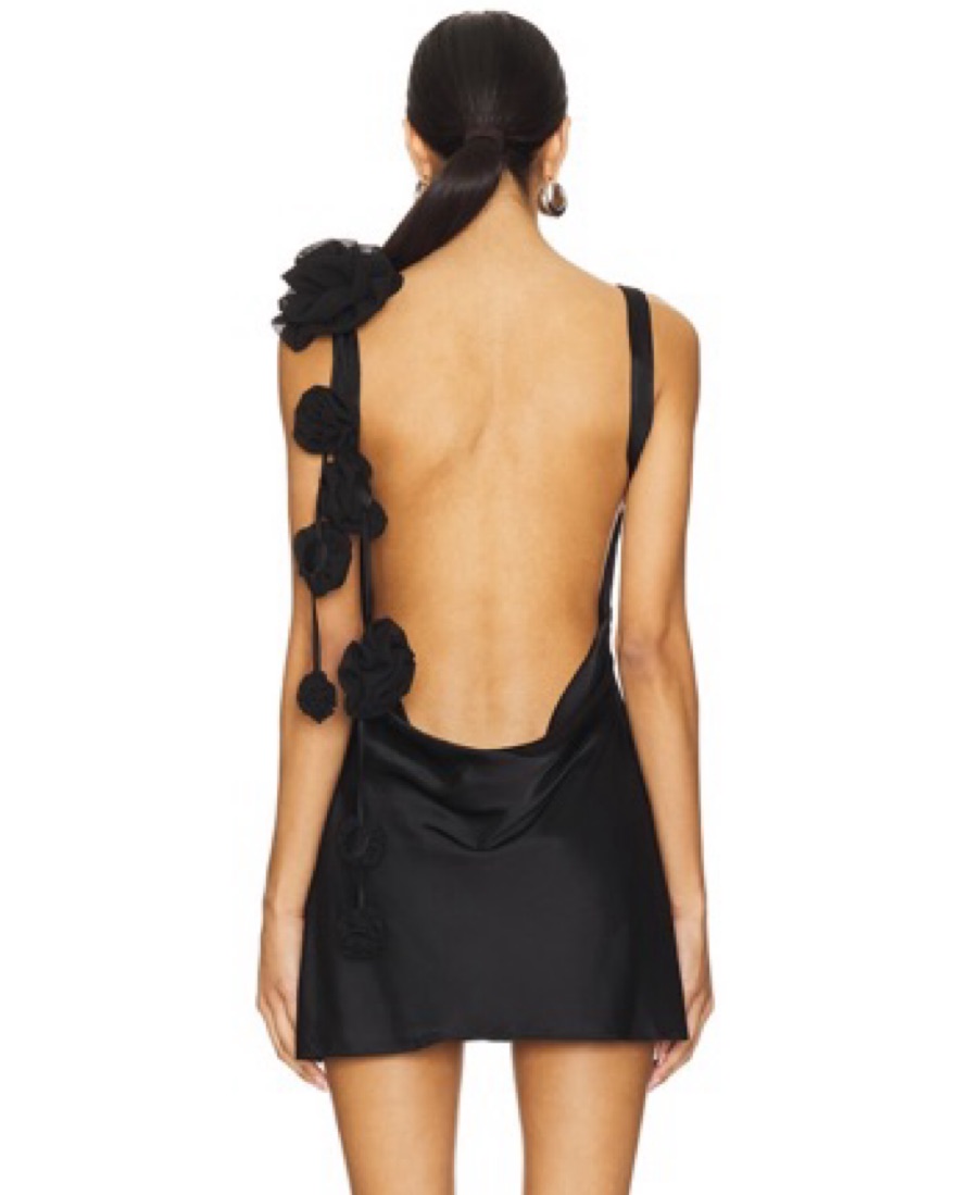 Open back black mini dress with flowers — size S
