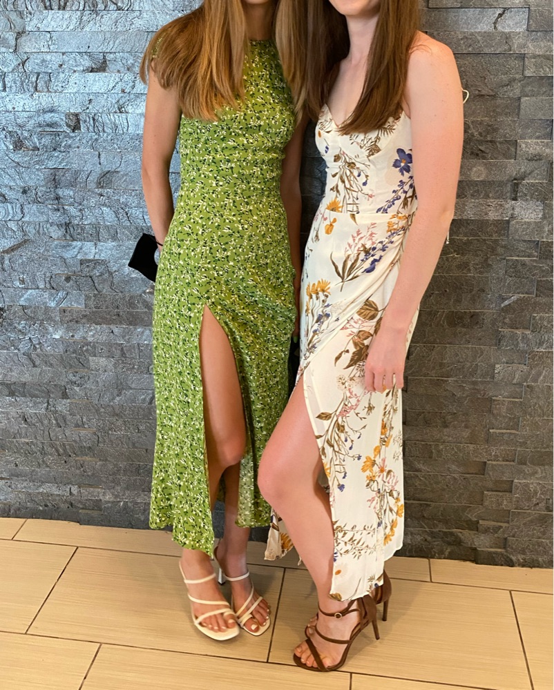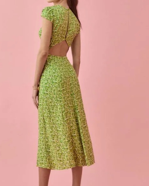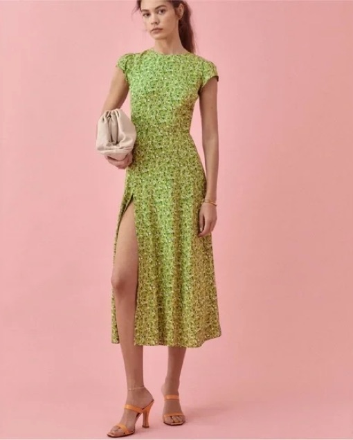 Green floral reformation dress in the color Samantha! Size 0 but would fit an xs-xxs (got it take in on the waist a bit).